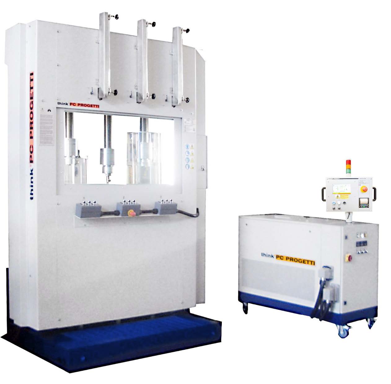 Il banco è composto da 3 stazioni di prova verticali con serraggio combinato.