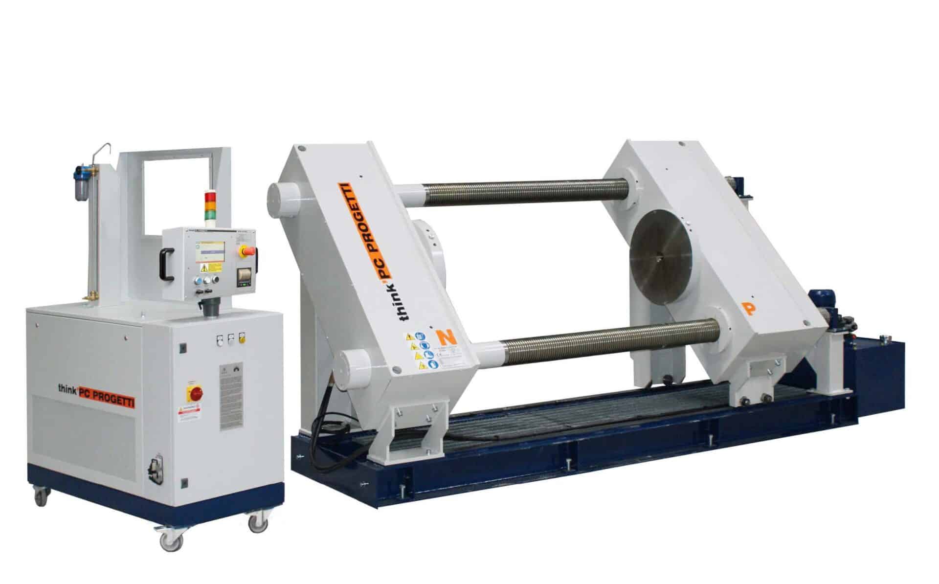 The mobile reaction bridge is moved by two screwed columns that assure complete absence of external forces on valve body and an hydraulic cylinder can make press clamping with or without proportional control.